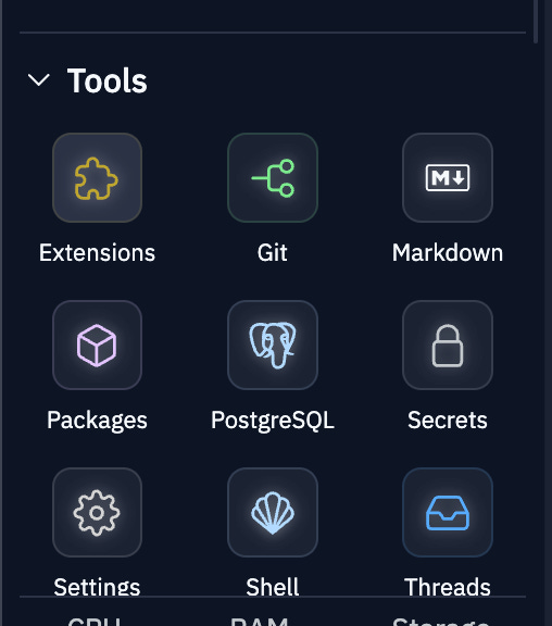 Now to place the ZEBEDEE API Key securely in the Replit dashboard, search for the Secrets tool on the sidebar: